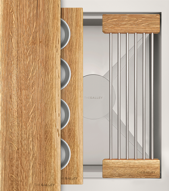 Workstation² — the next-generation evolution of the Galley Workstation — features a three-tier design with an integrated Upper Tier. Engineered for precision and smooth performance, it fits any countertop thickness and upgrades all the trusted features of the original—SilentArmor™, StarGroove™ drain, and premium finishes—for effortless, next-level precision.