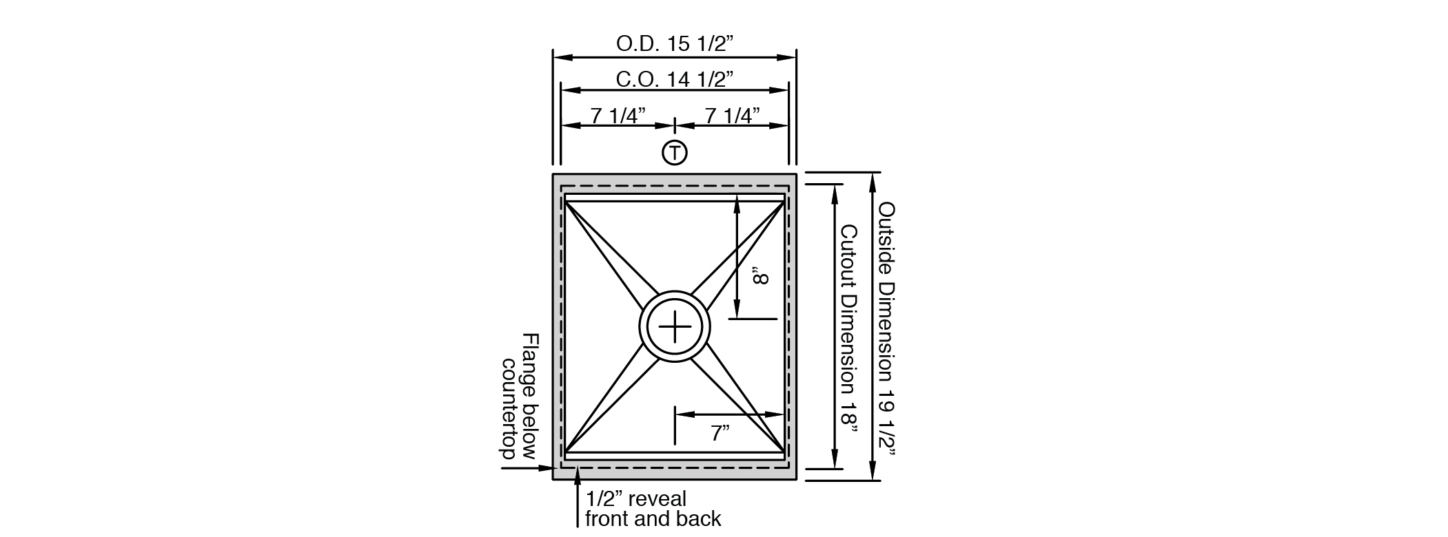 - Outside dimensions: 15 1/2” x 19 1/2” x 11 1/16”