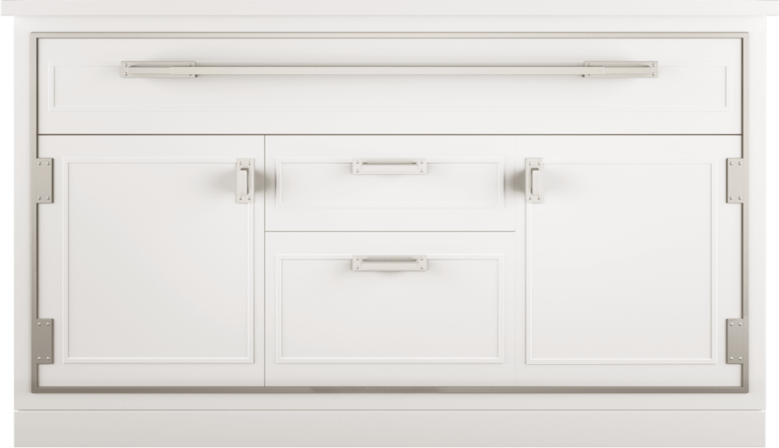 - Four Small Pulls 4-5/16” with Backplates and Slotted Screws