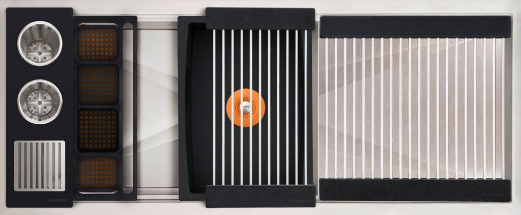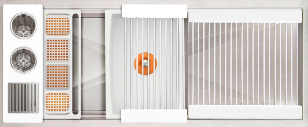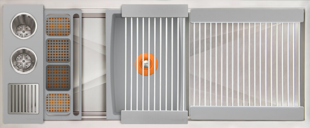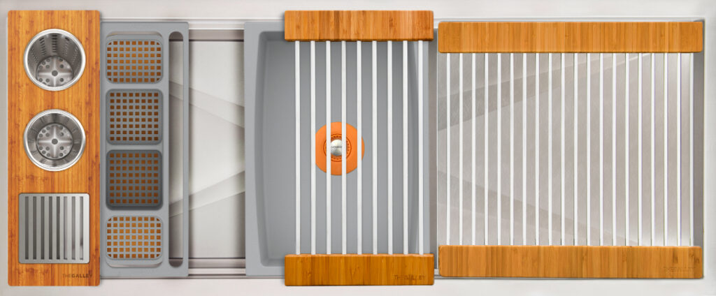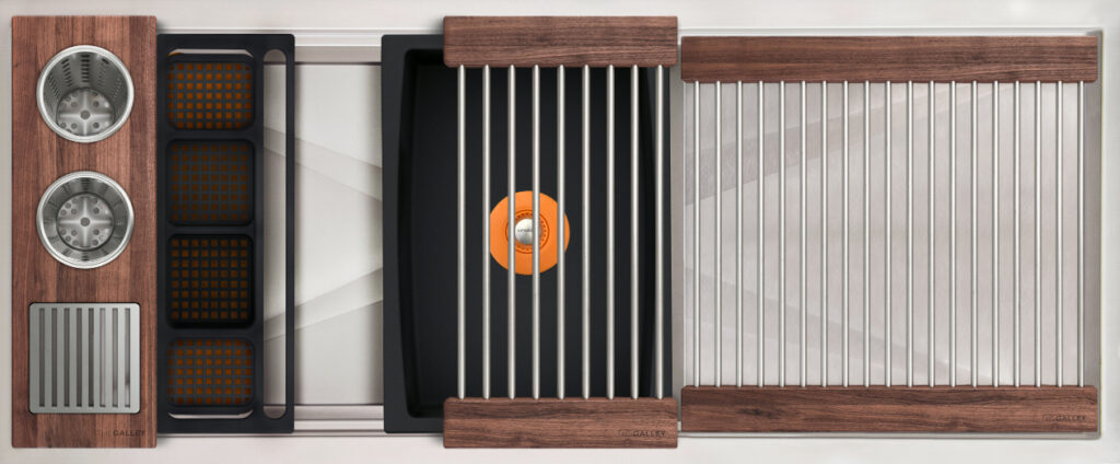 Our matte black Graphite Wood Composite material perfectly complements a contemporary, transitional, or traditional kitchen design and looks wonderful with a wide range of cabinet and countertop colors. This high-performance, dense material is only ½ inch thick, is gentle on your knives, and is easy to clean in the Workstation or in the dishwasher.