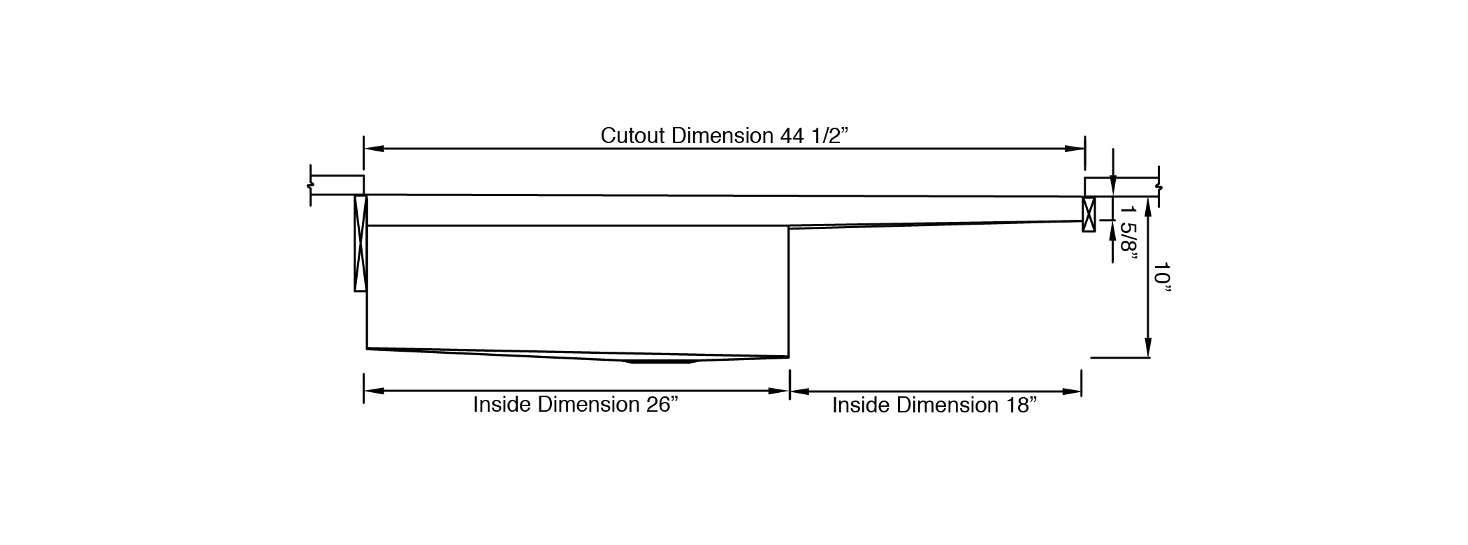 • Outside dimensions: 45 1/2” x 19 1/2” x 2 1/16”