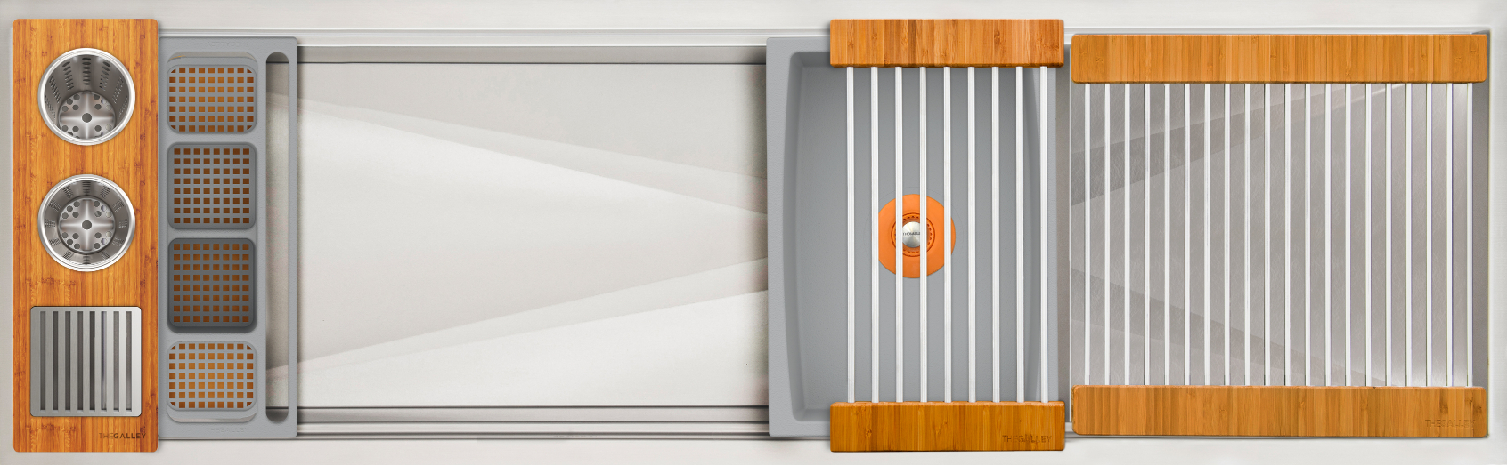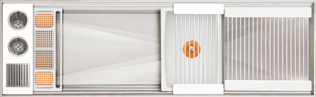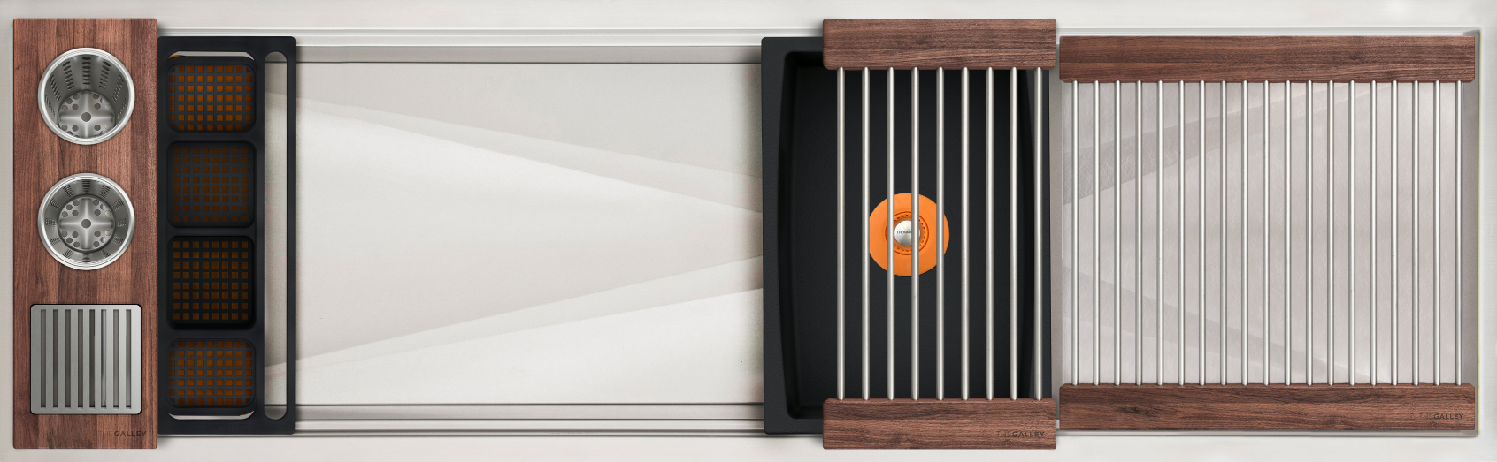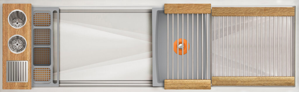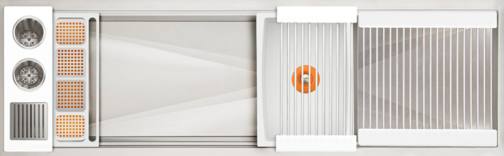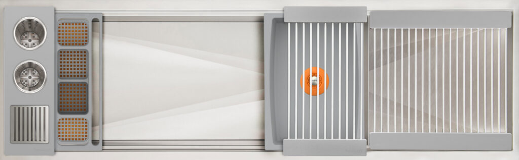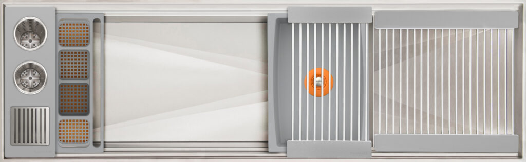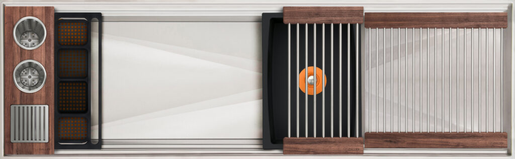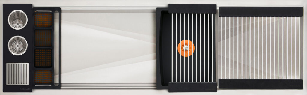Workstation² — the next-generation evolution of the Galley Workstation — features a three-tier design with an integrated Upper Tier. Engineered for precision and smooth performance, it fits any countertop thickness and upgrades all the trusted features of the original—SilentArmor™, StarGroove™ drain, and premium finishes—for effortless, next-level precision.