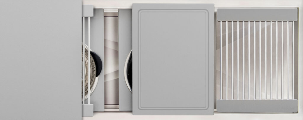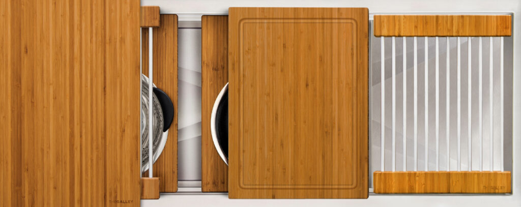 The original Galley Workstation® features a three-tier design with a full Culinary Kit, height-adjustable tools, and a Tier 1 Upper Deck. Best suited for 3 cm countertops, it delivers reliable performance with a classic fit.