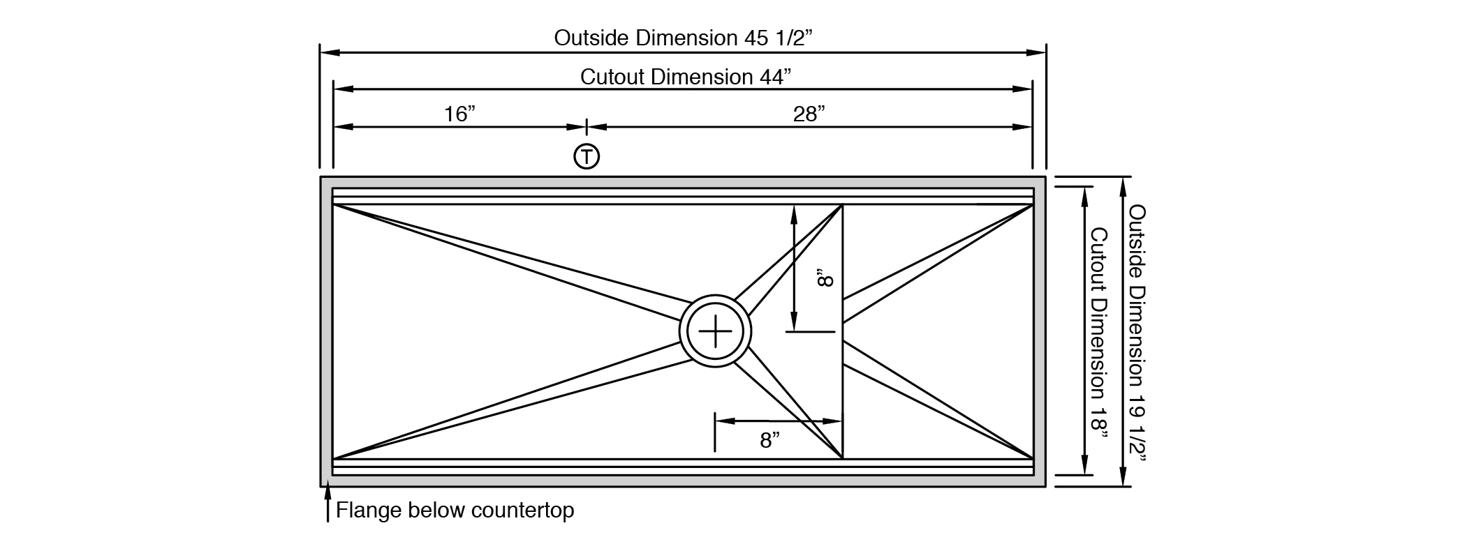 • Outside dimensions: 45 1/2” x 19 1/2” x 2 1/16”