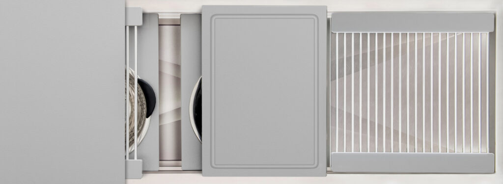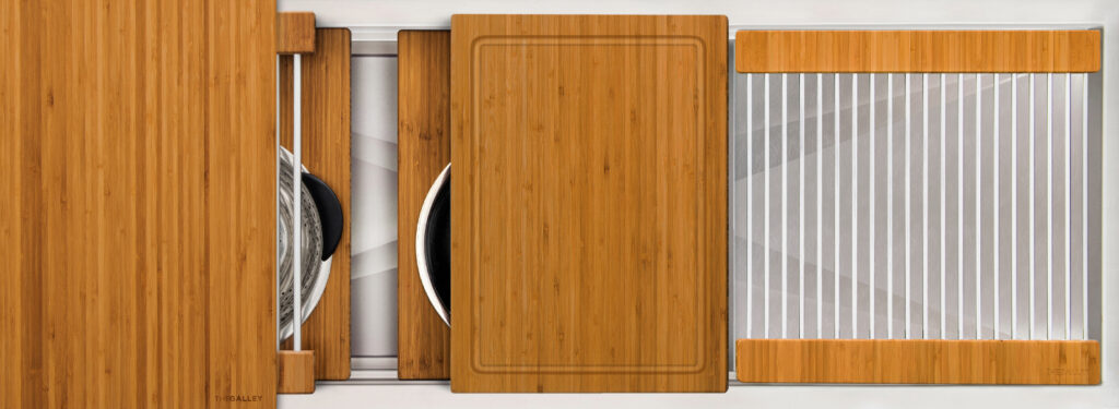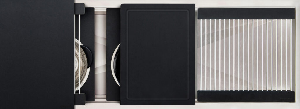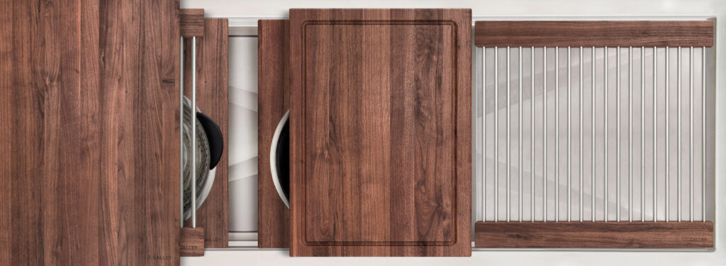 Workstation² — the next-generation evolution of the Galley Workstation — features a three-tier design with an integrated Upper Tier. Engineered for precision and smooth performance, it fits any countertop thickness and upgrades all the trusted features of the original—SilentArmor™, StarGroove™ drain, and premium finishes—for effortless, next-level precision.