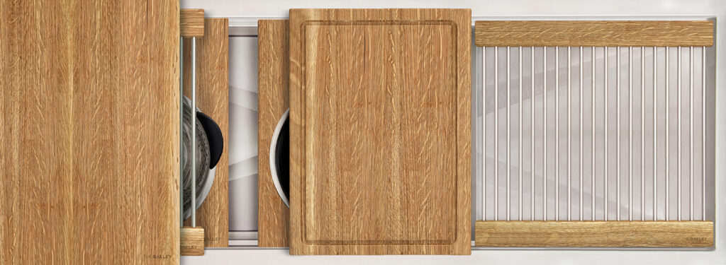 The original Galley Workstation® features a three-tier design with a full Culinary Kit, height-adjustable tools, and a Tier 1 Upper Deck. Best suited for 3 cm countertops, it delivers reliable performance with a classic fit.
