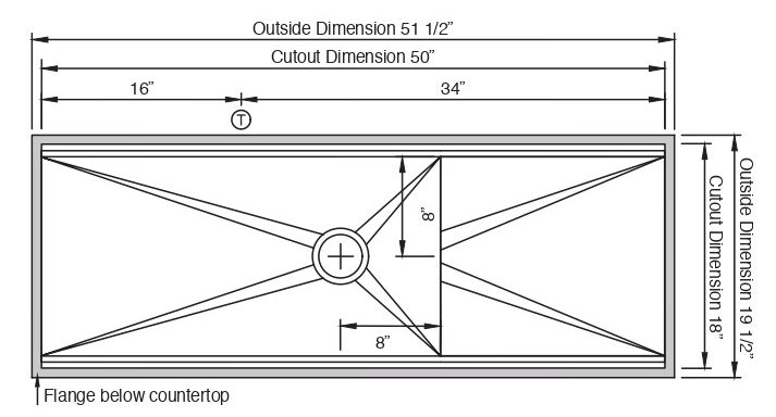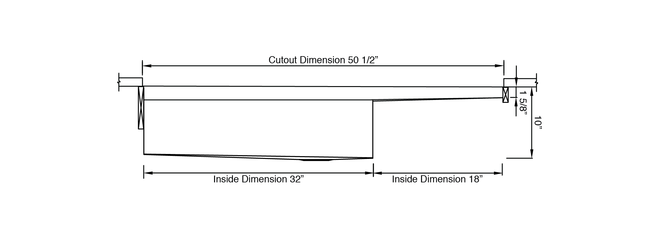 - Outside dimensions: 51 1/2” x 19 1/2” x 2 1/16”