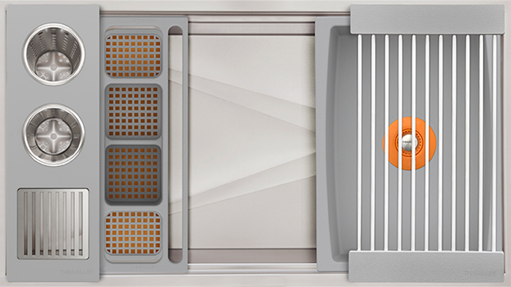 Workstation² — the next-generation evolution of the Galley Workstation — features a three-tier design with an integrated Upper Tier. Engineered for precision and smooth performance, it fits any countertop thickness and upgrades all the trusted features of the original—SilentArmor™, StarGroove™ drain, and premium finishes—for effortless, next-level precision.
