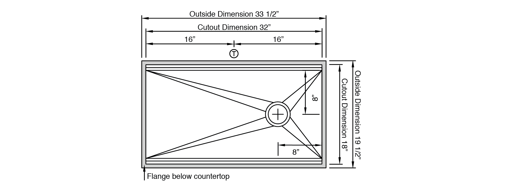 - Outside dimensions: 33 1/2” x 19 1/2” x 10 5/16”