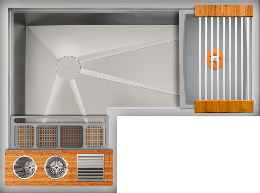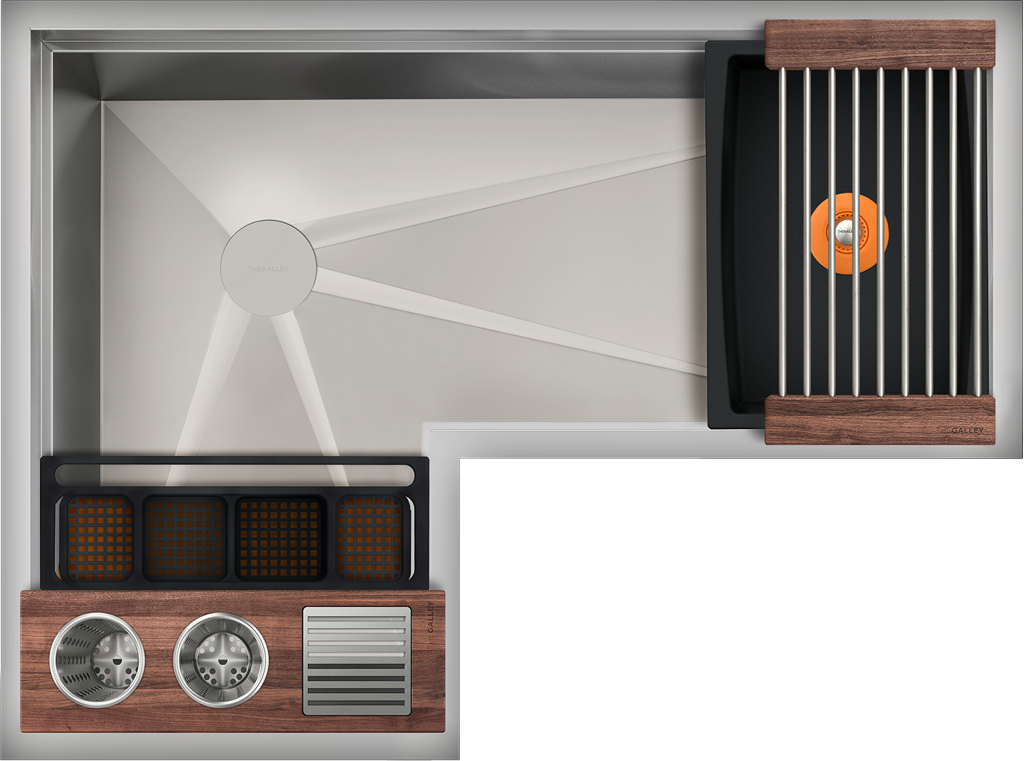 Our matte black Graphite Wood Composite material perfectly complements a contemporary, transitional, or traditional kitchen design and looks wonderful with a wide range of cabinet and countertop colors. This high-performance, dense material is only ½ inch thick, is gentle on your knives, and is easy to clean in the Workstation or in the dishwasher.
