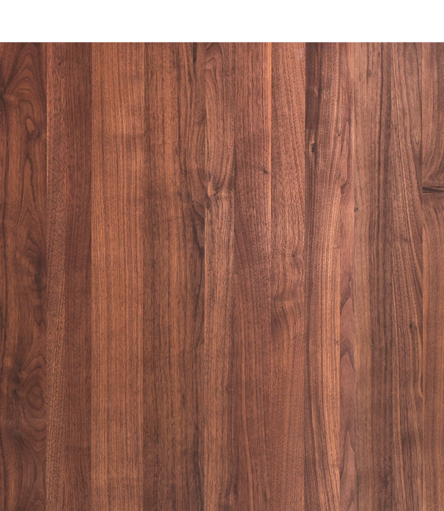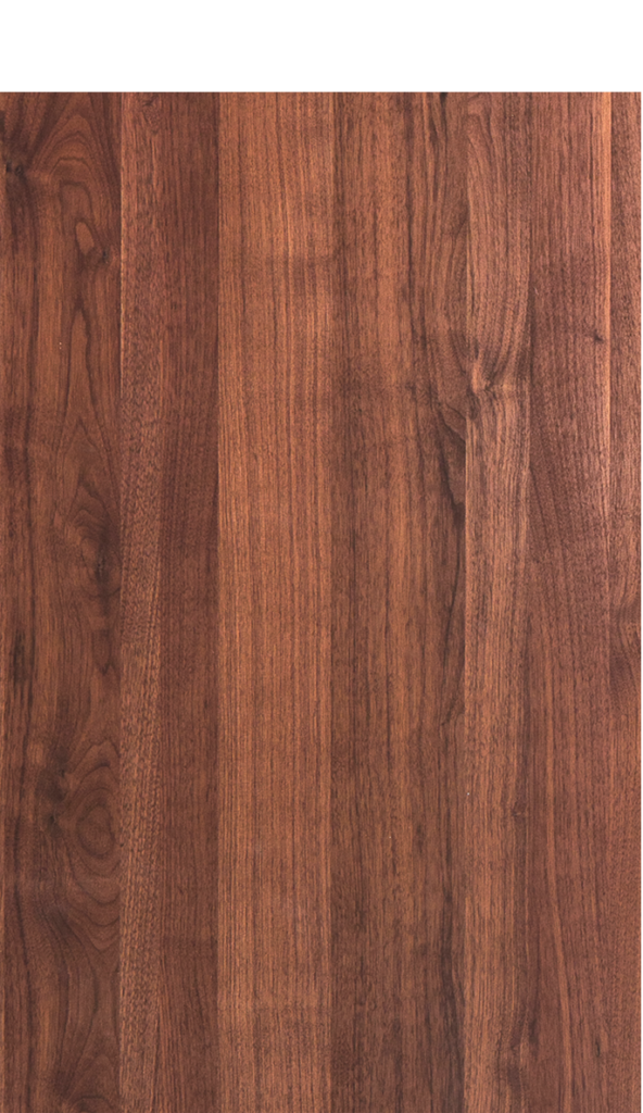 With its dark and rich hues, this stunning finish is crafted from the finest quality American Black Walnut. As one of our most sought-after material finish options, this ¾” thick eco-friendly wood material adds a touch of warmth and sophistication to any space.