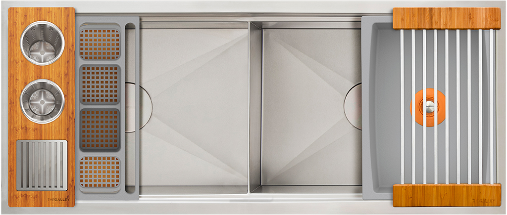 Our matte black Graphite Wood Composite material perfectly complements a contemporary, transitional, or traditional kitchen design and looks wonderful with a wide range of cabinet and countertop colors. This high-performance, dense material is only ½ inch thick, is gentle on your knives, and is easy to clean in the Workstation or in the dishwasher.