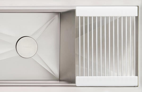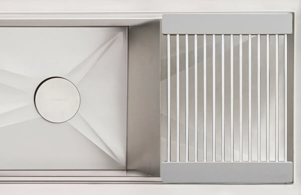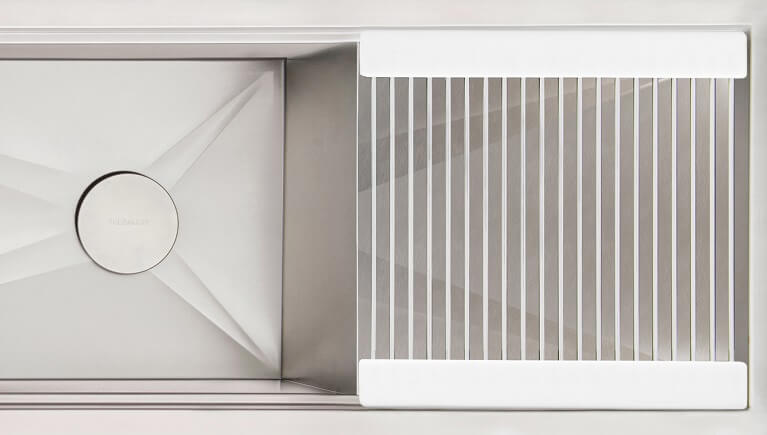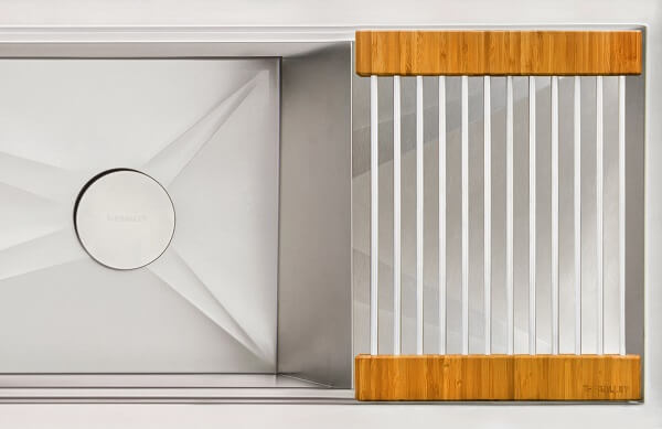 Our matte black Graphite Wood Composite material perfectly complements a contemporary, transitional, or traditional kitchen design and looks wonderful with a wide range of cabinet and countertop colors. This high-performance, dense material is only ½ inch thick, is gentle on your knives, and is easy to clean in the Workstation or in the dishwasher.