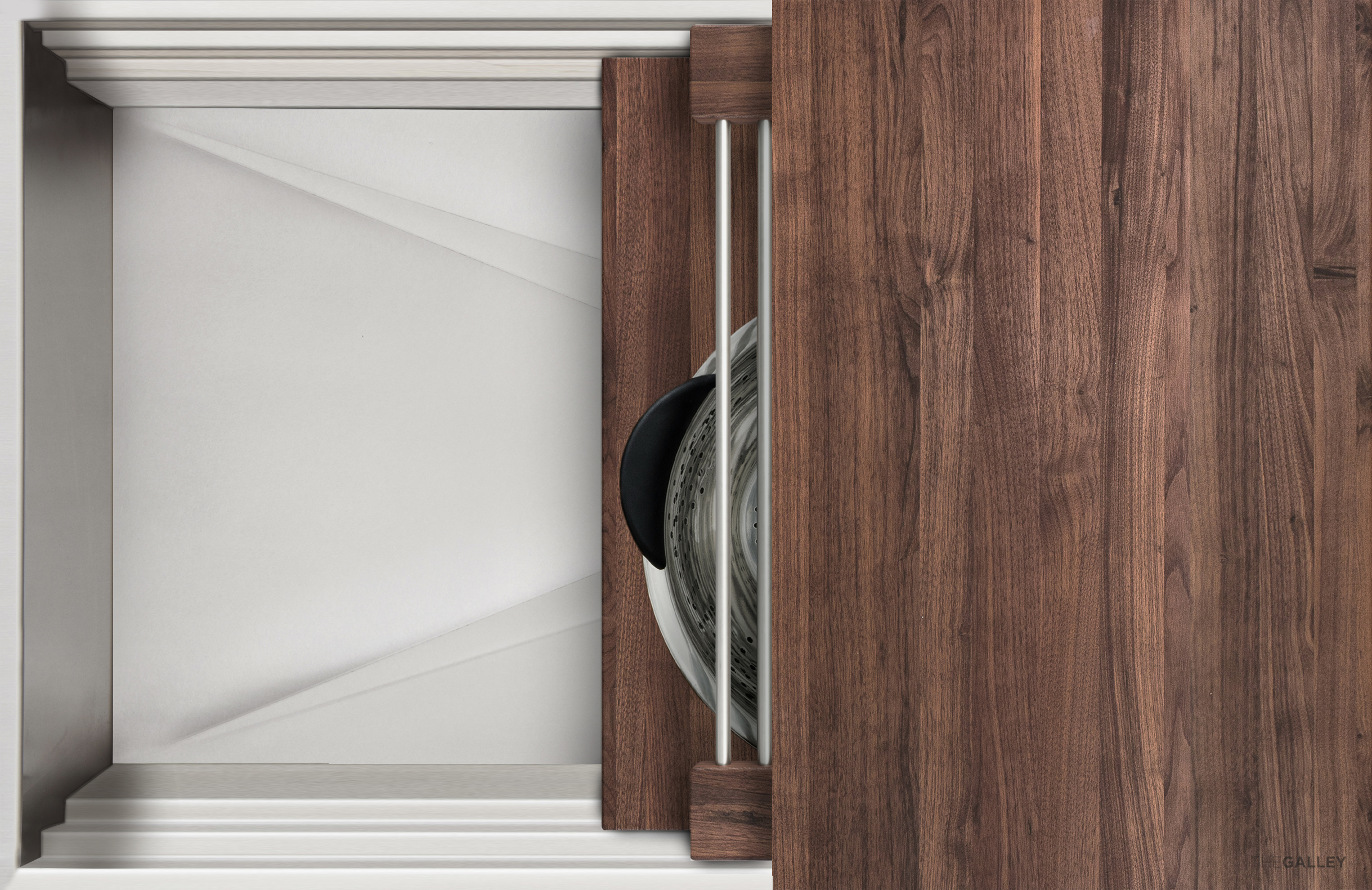 A modular cover system and third-tier workspace available in all four finishes. The sections slide apart for easy removal and each one can be used individually on the countertop tier. Use as a complete set to cover the Workstation or individually as work surfaces.
