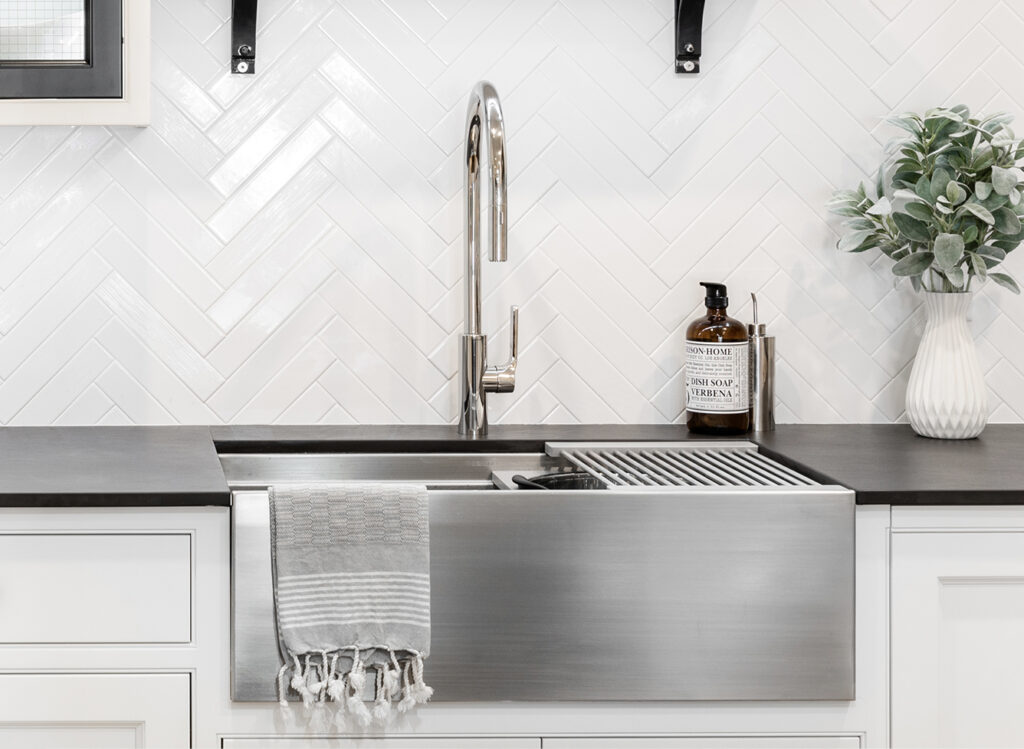 The Galley’s stainless steel Apron Front offers a unique and stylish option for any kitchen. Customize the height and thickness to align with your countertop thickness and design preferences.
