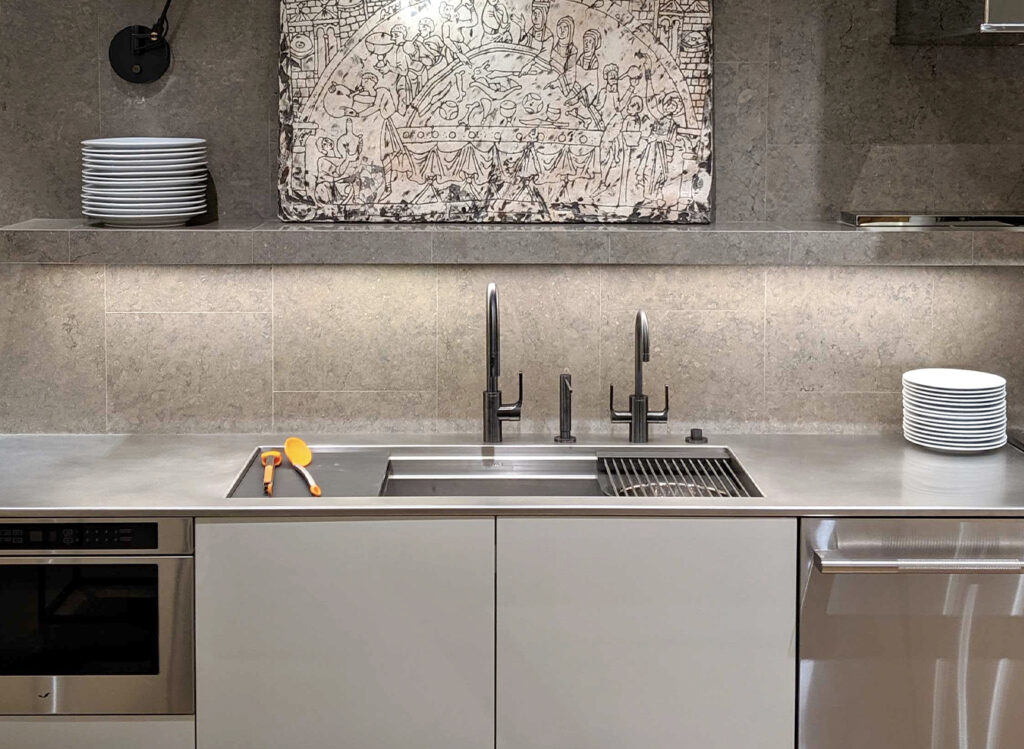 Make your Workstation a WorkTop™️! Integrate any Workstation into a stainless steel countertop of various thicknesses and shapes with or without a backsplash. The stainless steel WorkTop is not only beautiful and sleek, but is perfect for busy kitchens and cooks, as it is highly resistant to scratches, stains, and heat.