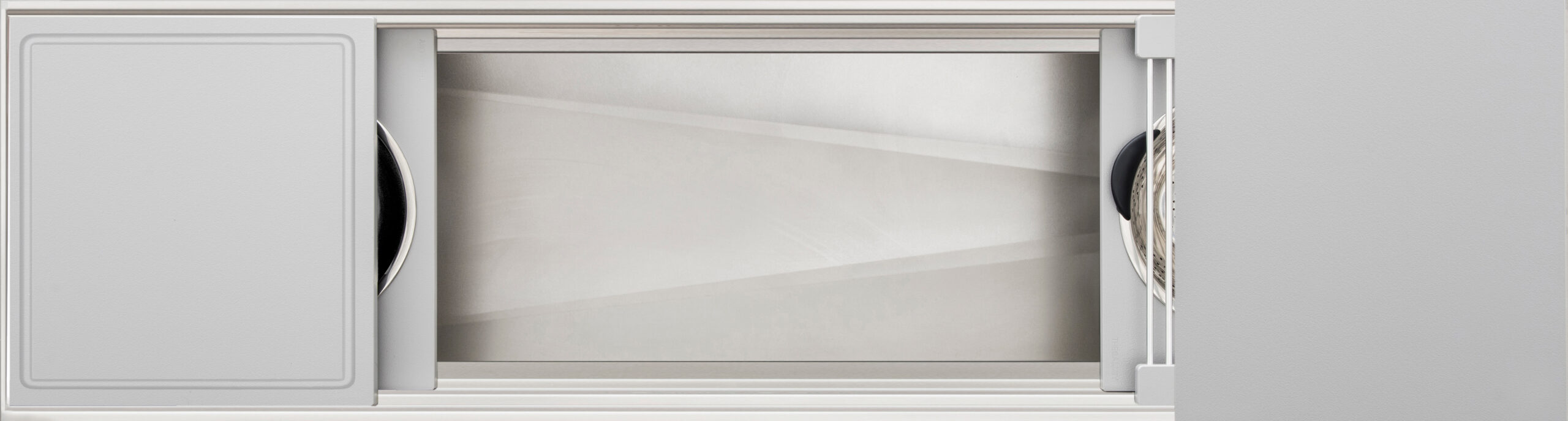 A modular cover system and third-tier workspace available in all four finishes. The sections slide apart for easy removal and each one can be used individually on the countertop tier. Use as a complete set to cover the Workstation or individually as work surfaces.
