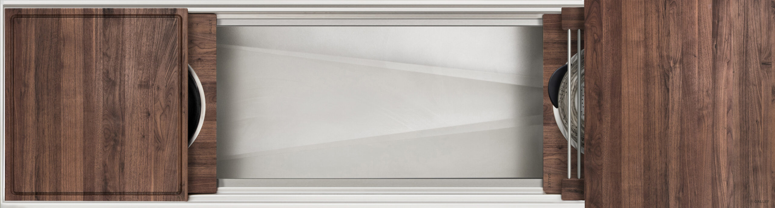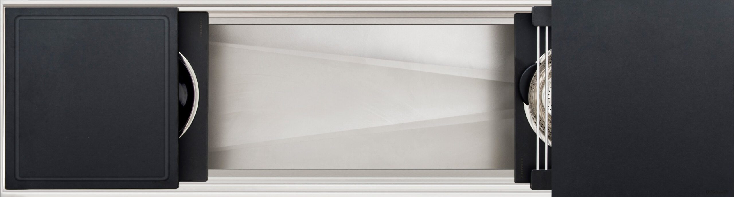 Our matte black Graphite Wood Composite material perfectly complements a contemporary, transitional, or traditional kitchen design and looks wonderful with a wide range of cabinet and countertop colors. This high-performance, dense material is only ½ inch thick, is gentle on your knives, and is easy to clean in the Workstation or in the dishwasher.