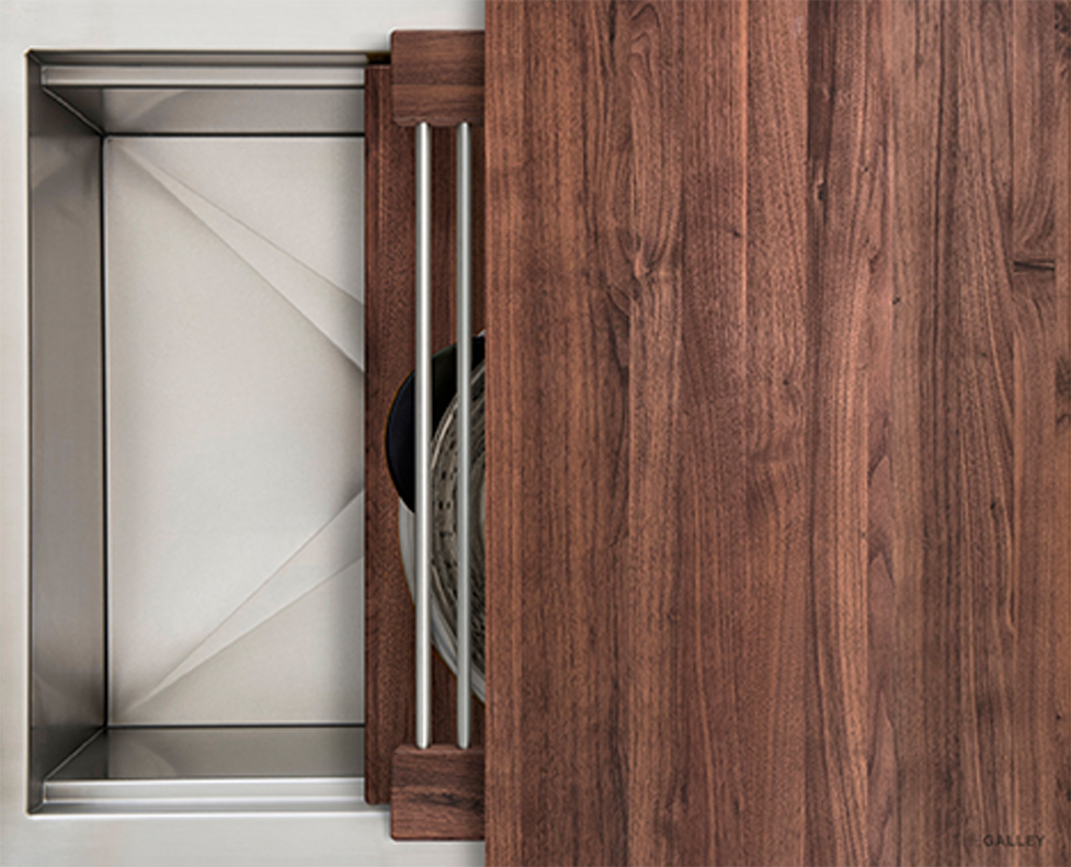 Workstation² — the next-generation evolution of the Galley Workstation — features a three-tier design with an integrated Upper Tier. Engineered for precision and smooth performance, it fits any countertop thickness and upgrades all the trusted features of the original—SilentArmor™, StarGroove™ drain, and premium finishes—for effortless, next-level precision.