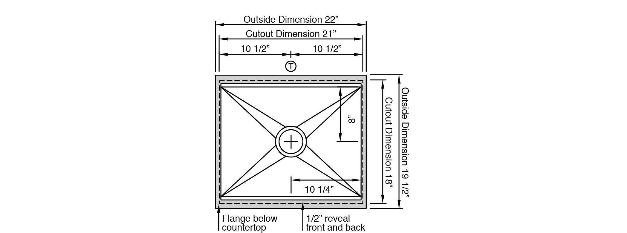 - Outside dimensions: 22 1/2” x 19 1/2” x 10 5/16”