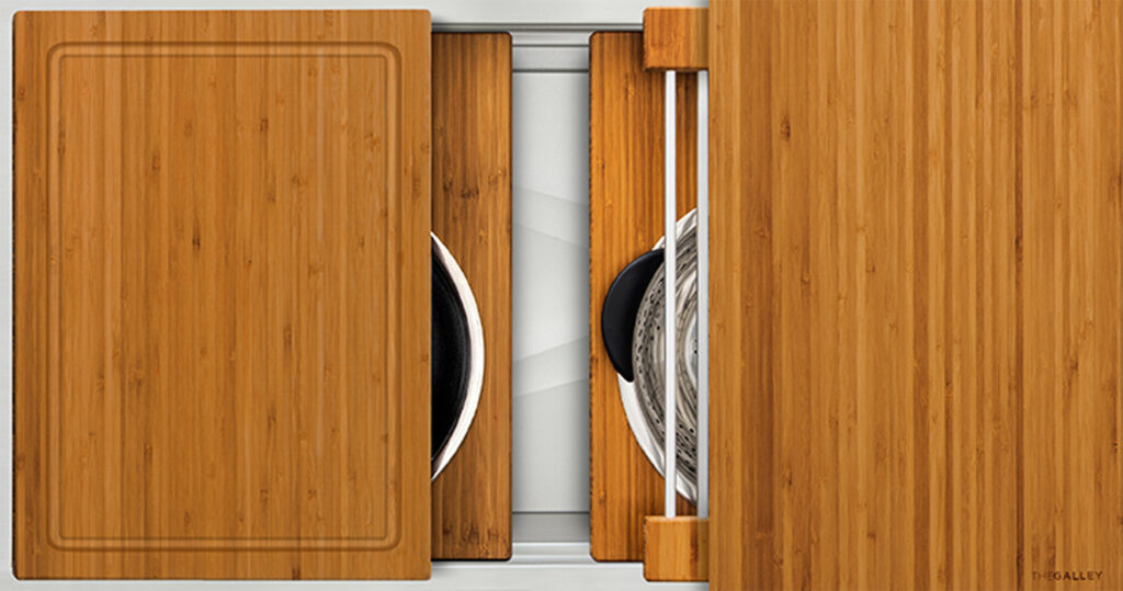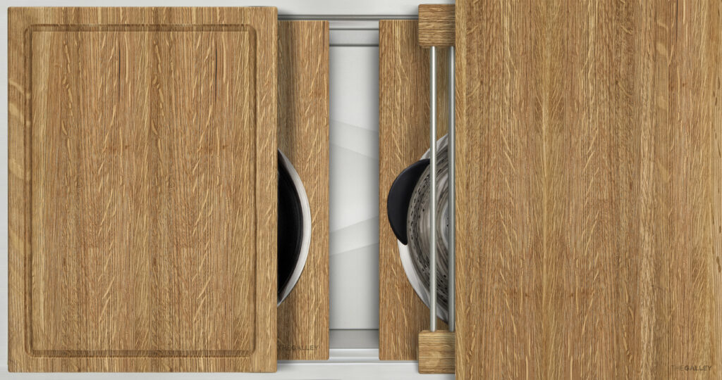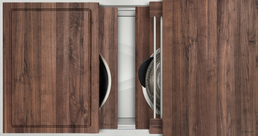 The original Galley Workstation® features a three-tier design with a full Culinary Kit, height-adjustable tools, and a Tier 1 Upper Deck. Best suited for 3 cm countertops, it delivers reliable performance with a classic fit.