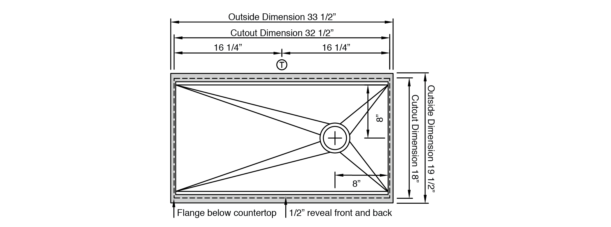 • Outside dimensions: 33 1/2” x 19 1/2” x 10 5/16”