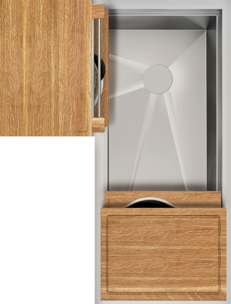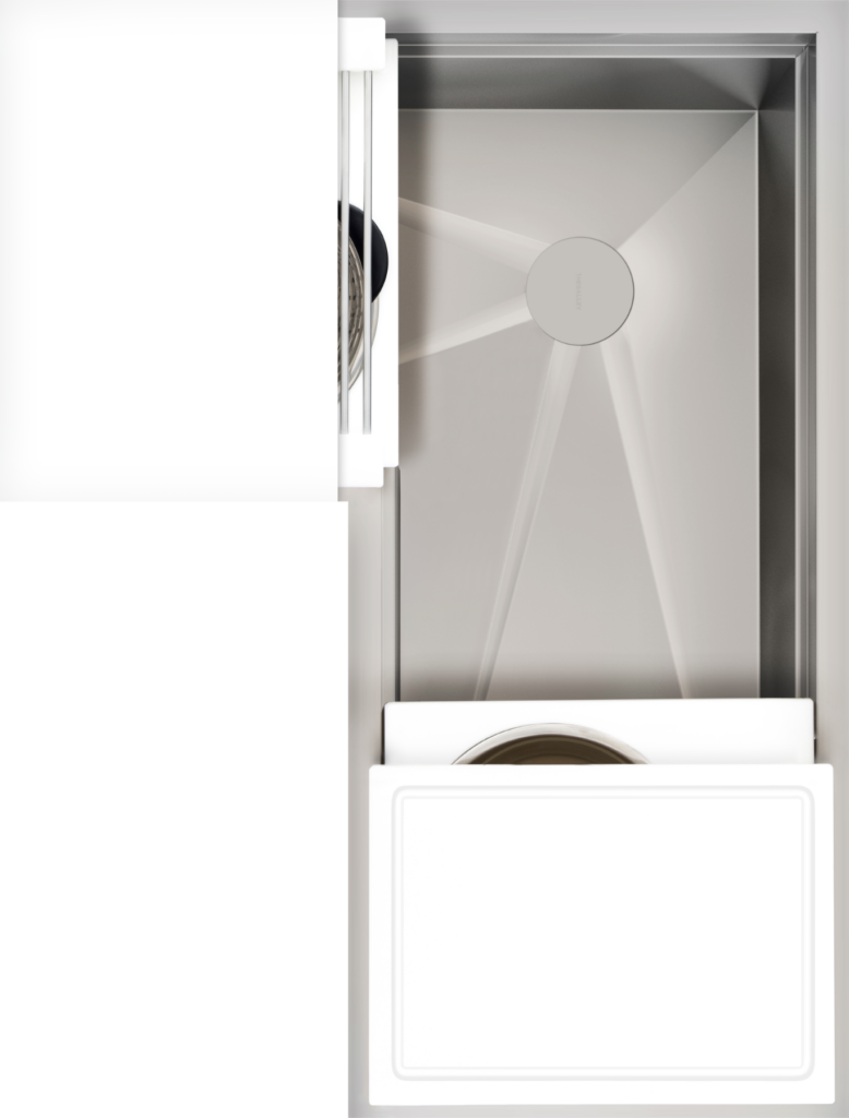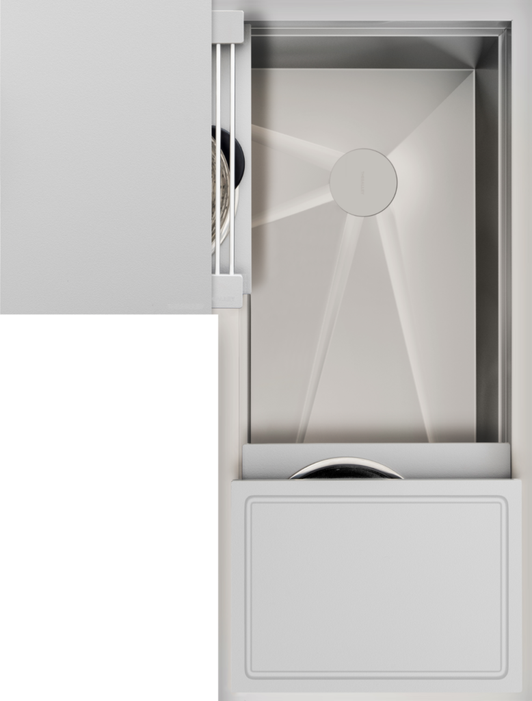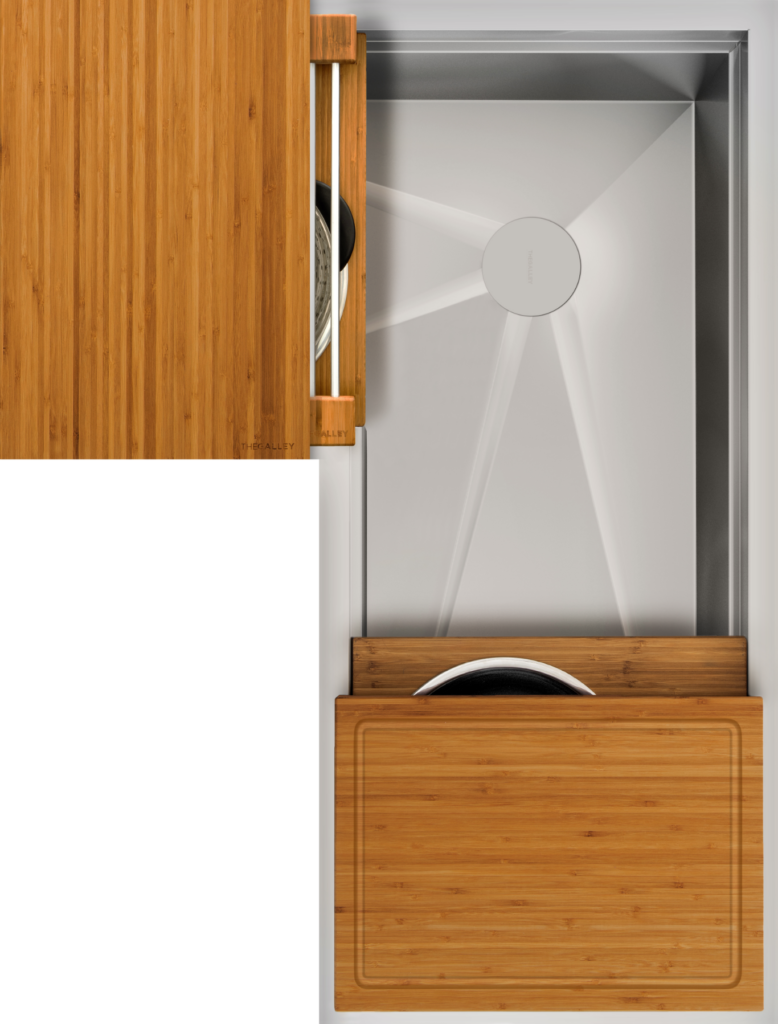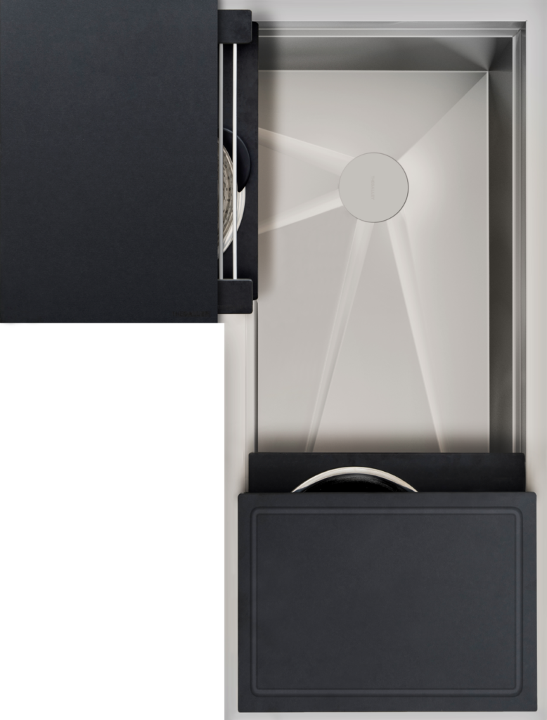 Our matte black Graphite Wood Composite material perfectly complements a contemporary, transitional, or traditional kitchen design and looks wonderful with a wide range of cabinet and countertop colors. This high-performance, dense material is only ½ inch thick, is gentle on your knives, and is easy to clean in the Workstation or in the dishwasher.