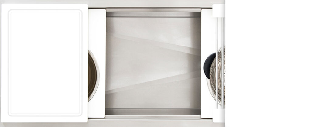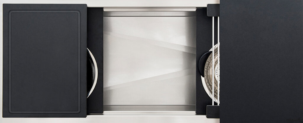 Workstation² — the next-generation evolution of the Galley Workstation — features a three-tier design with an integrated Upper Tier. Engineered for precision and smooth performance, it fits any countertop thickness and upgrades all the trusted features of the original—SilentArmor™, StarGroove™ drain, and premium finishes—for effortless, next-level precision.