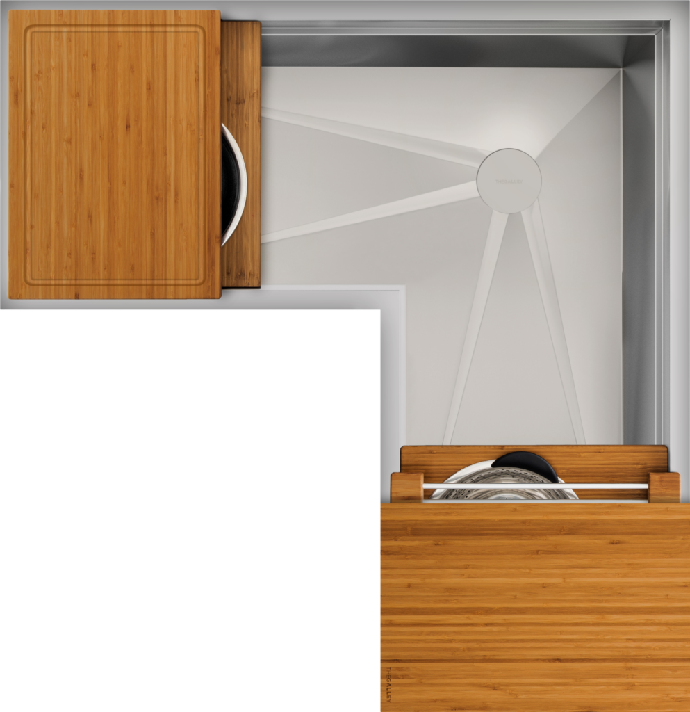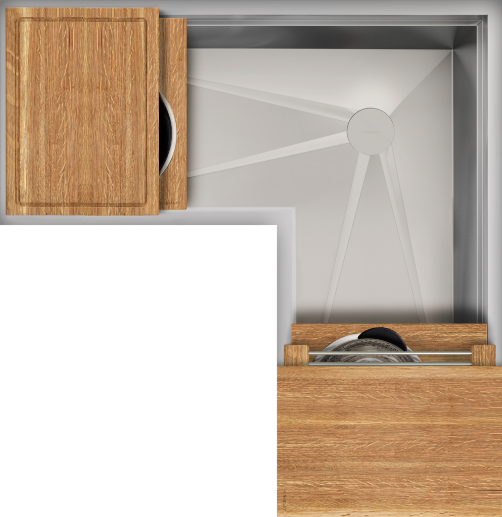 Our matte black Graphite Wood Composite material perfectly complements a contemporary, transitional, or traditional kitchen design and looks wonderful with a wide range of cabinet and countertop colors. This high-performance, dense material is only ½ inch thick, is gentle on your knives, and is easy to clean in the Workstation or in the dishwasher.