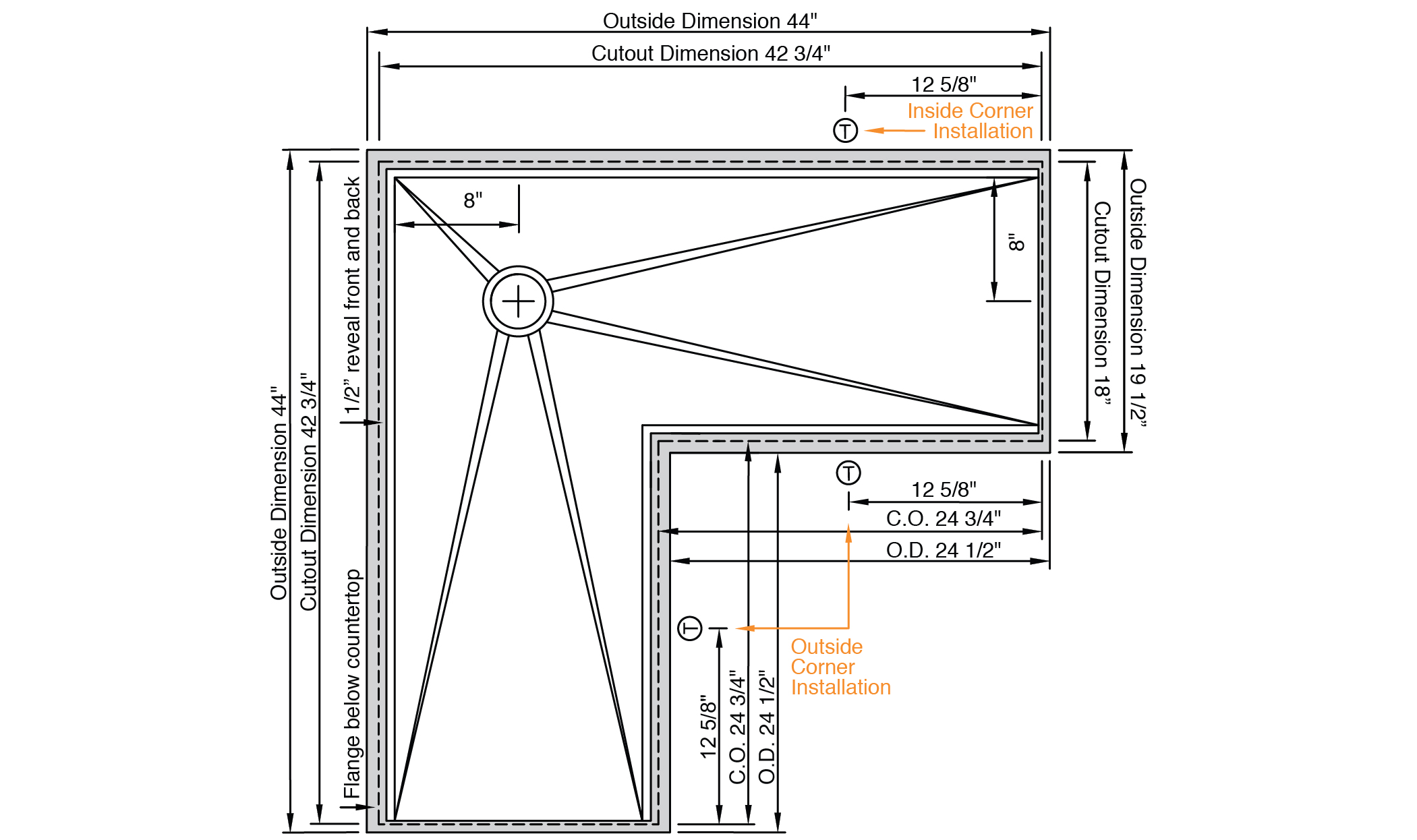 - Countertop cutout: 42 3/4” x 42 3/4” x 18”