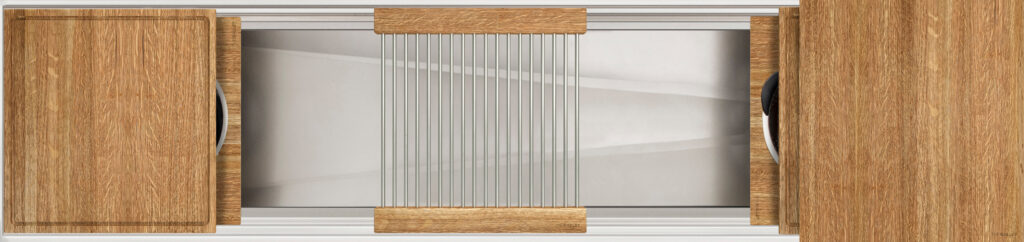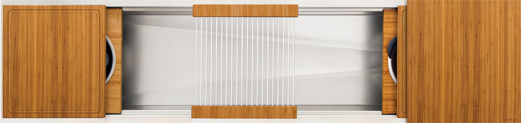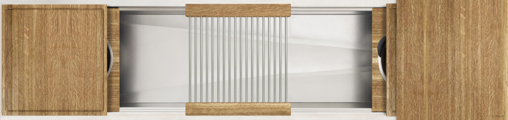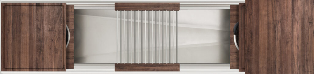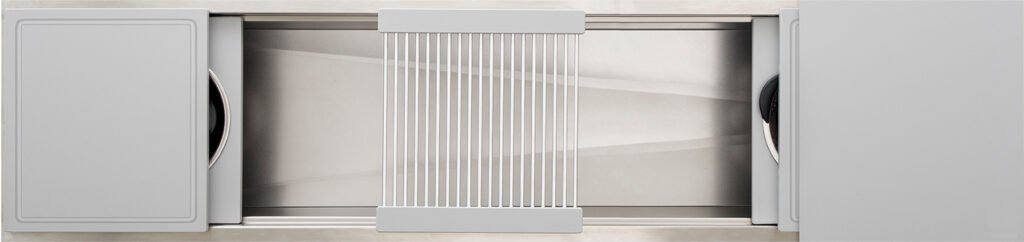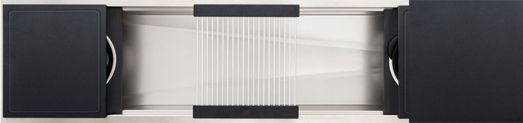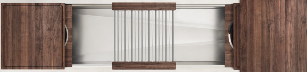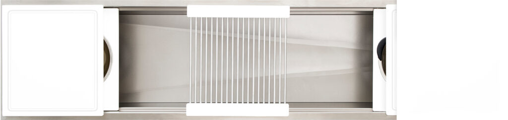 Workstation² — the next-generation evolution of the Galley Workstation — features a three-tier design with an integrated Upper Tier. Engineered for precision and smooth performance, it fits any countertop thickness and upgrades all the trusted features of the original—SilentArmor™, StarGroove™ drain, and premium finishes—for effortless, next-level precision.