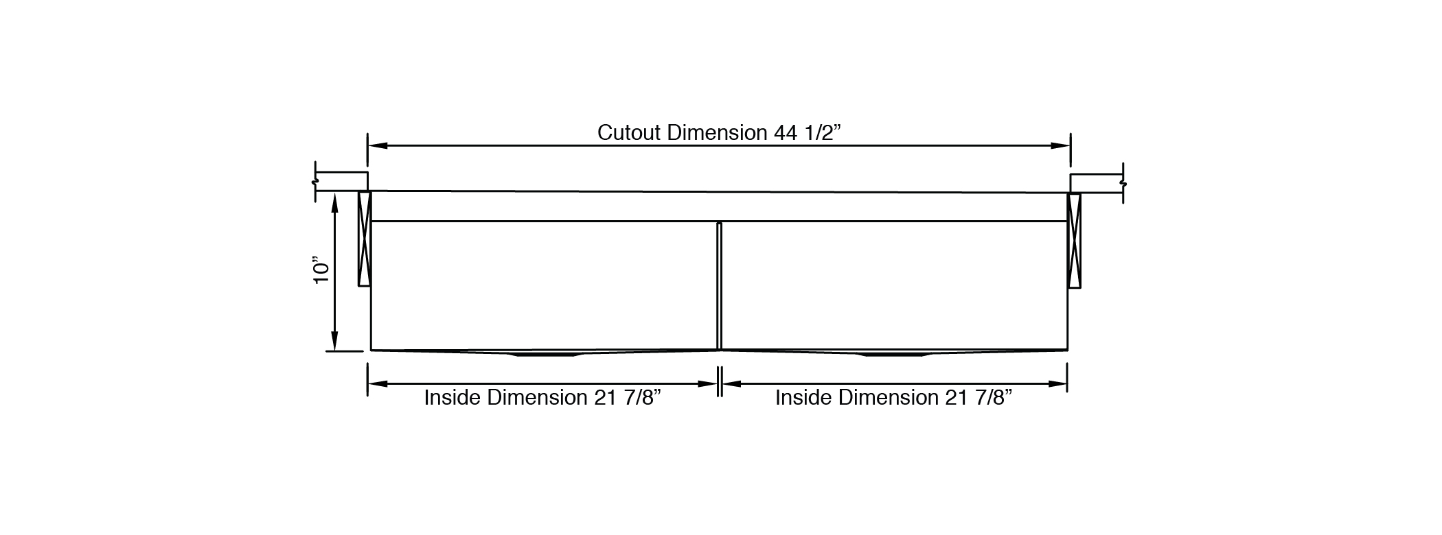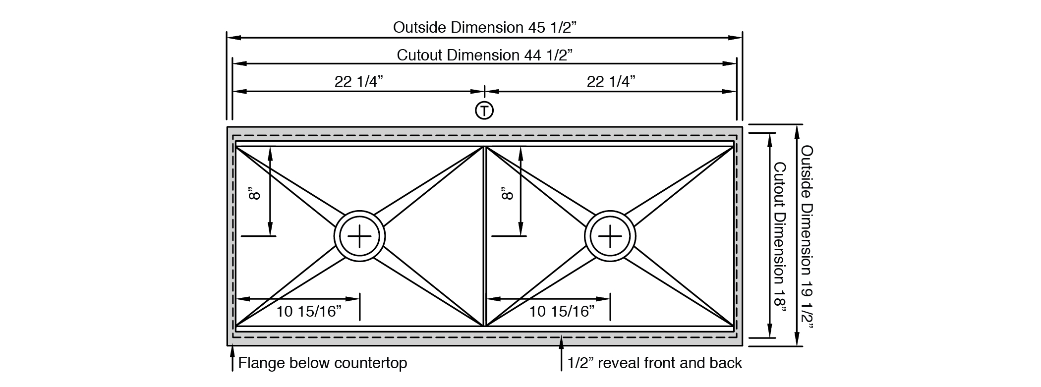 • Countertop cutout: 44 1/2” x 18”