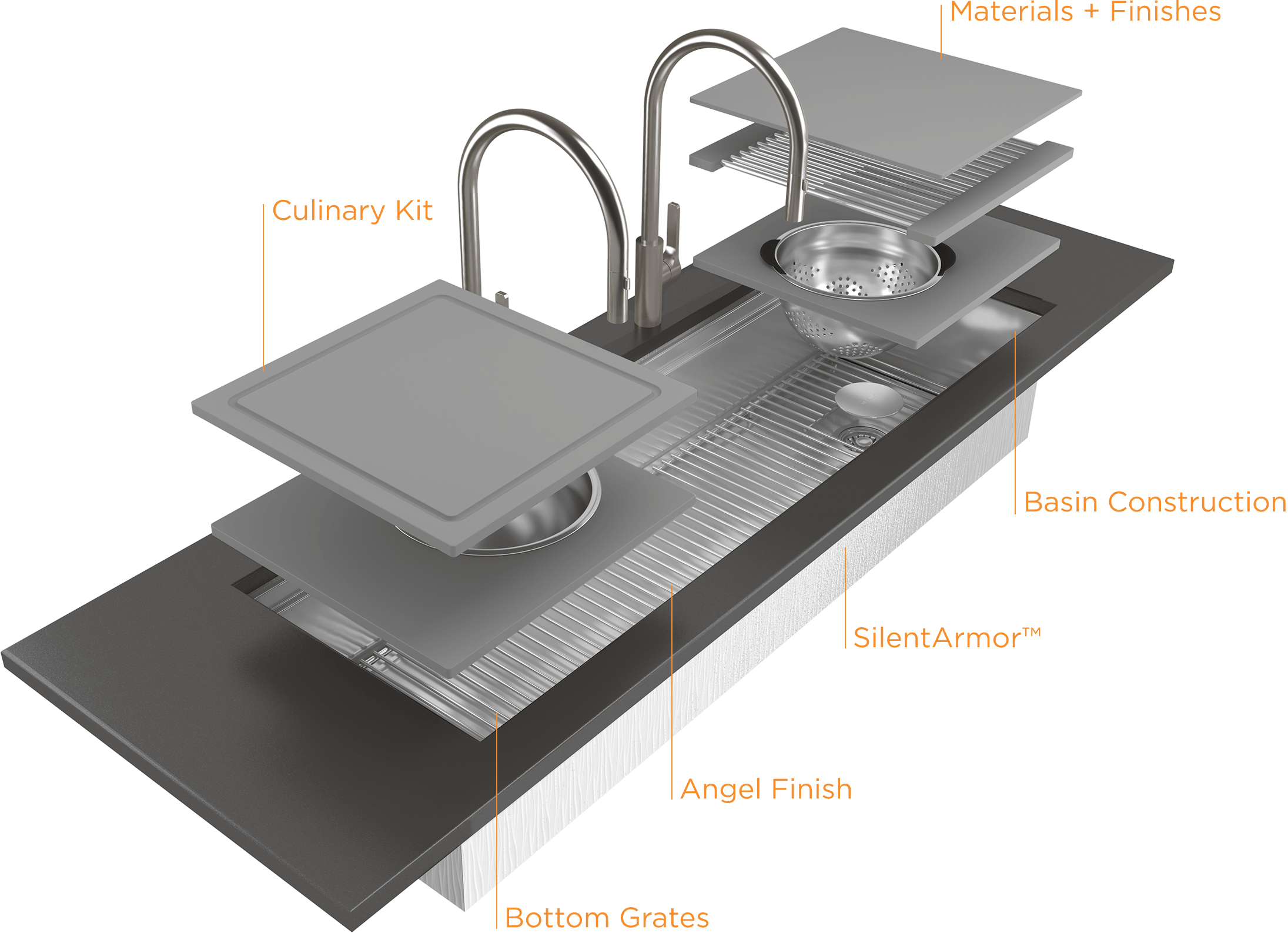 Our basins are fully wrapped with our exclusive Sound Reduction Technology